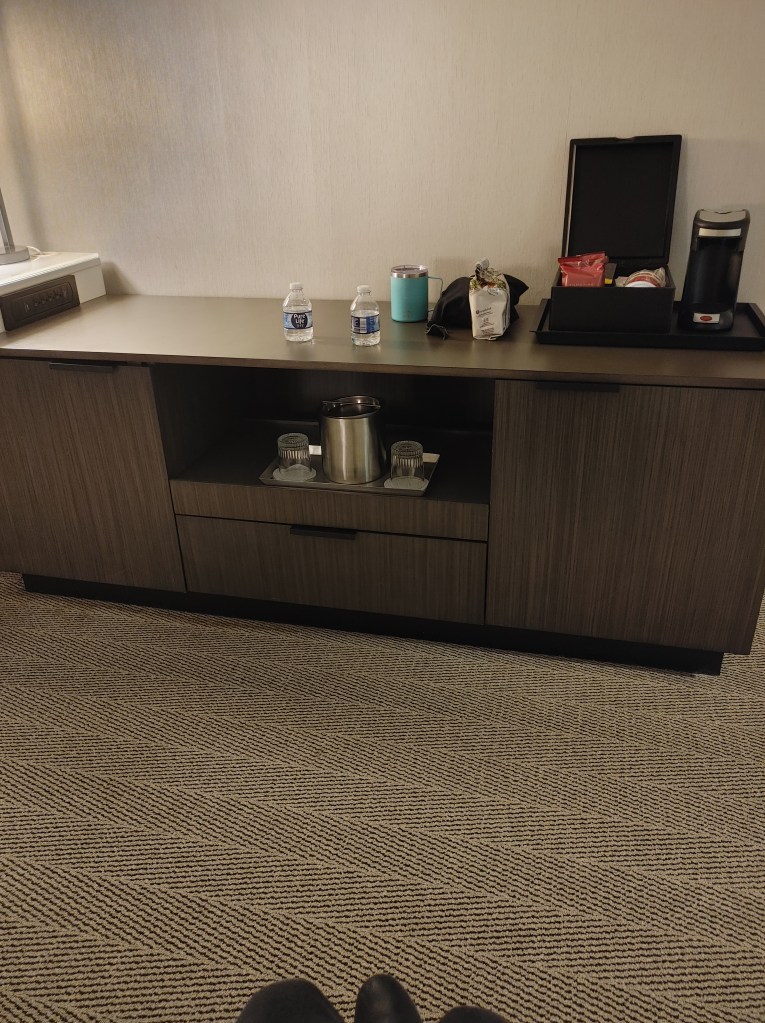 I have very good taste, actually. If you were to put a bunch of things in front of me, I can usually pick out the most expensive thing. I won’t buy it because I grew up frugal and justify every dollar that I spend before I spend it. But rest assured, I can usually spot the most lavish and lush thing on the market shelf. This hotel room was not it. I am also a minimalist! Not in the everything is gray kind of way, but in the I only have a certain number of items that I own and I love each one of them kind of way. I know the difference between need and want. What I wanted from the Marriot was to feel pampered and like I was living the way The Upper Class do. Well, if that’s what they are living with, I feel bad for them. The Emperor’s New Clothes comes to mind. I think someone led you guys astray somewhere along the line.