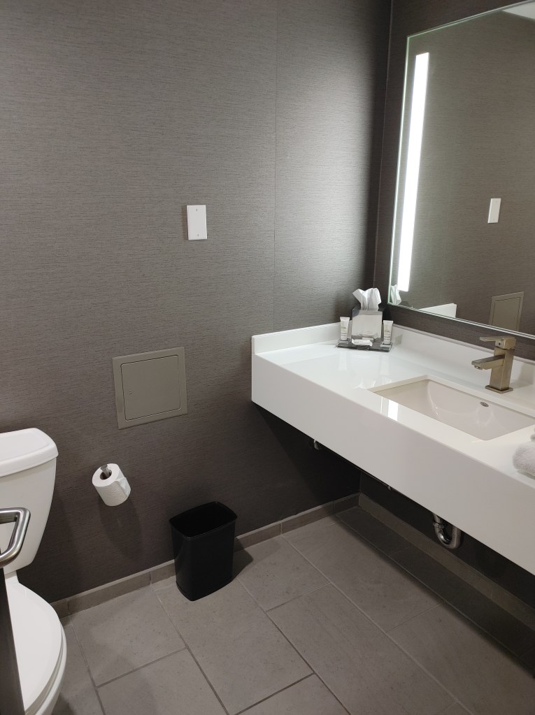 I honestly felt robbed. THIS was $259 a night? So, the wallpaper wasn’t peeling. The leak in the toilet wasn’t bad enough for me to call and disturb my stay. The sheets were comfortable and the towels were soft, but it felt like they were going for minimalism and did it all wrong. The only décor was one wall as a picture mural of the George Washington Bridge (you could see NY out of the window so I suppose that would be a draw for people outside of the area). There was no artwork on the walls. No vase with a single flower. Nothing. No decorations at all.